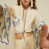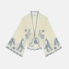 100% cotton knotted shirt with embroidery and contrasting scalloped trims