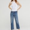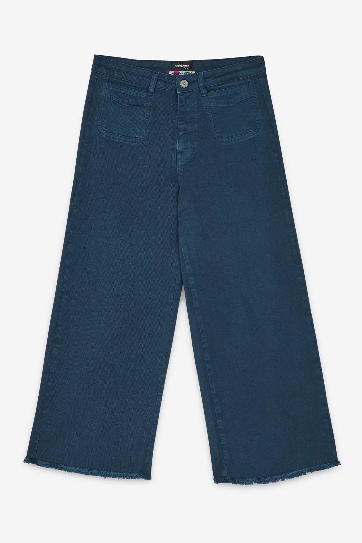 100% Cotton Jeans Cropped French with raw cut hemline.