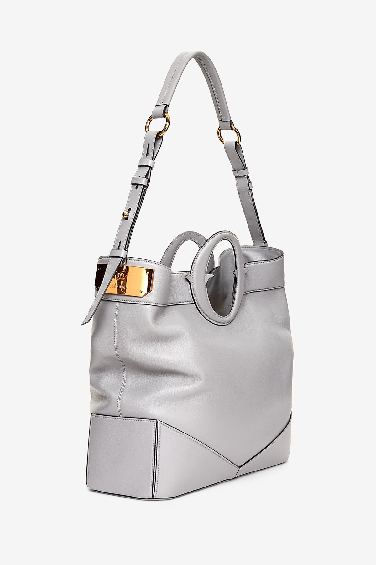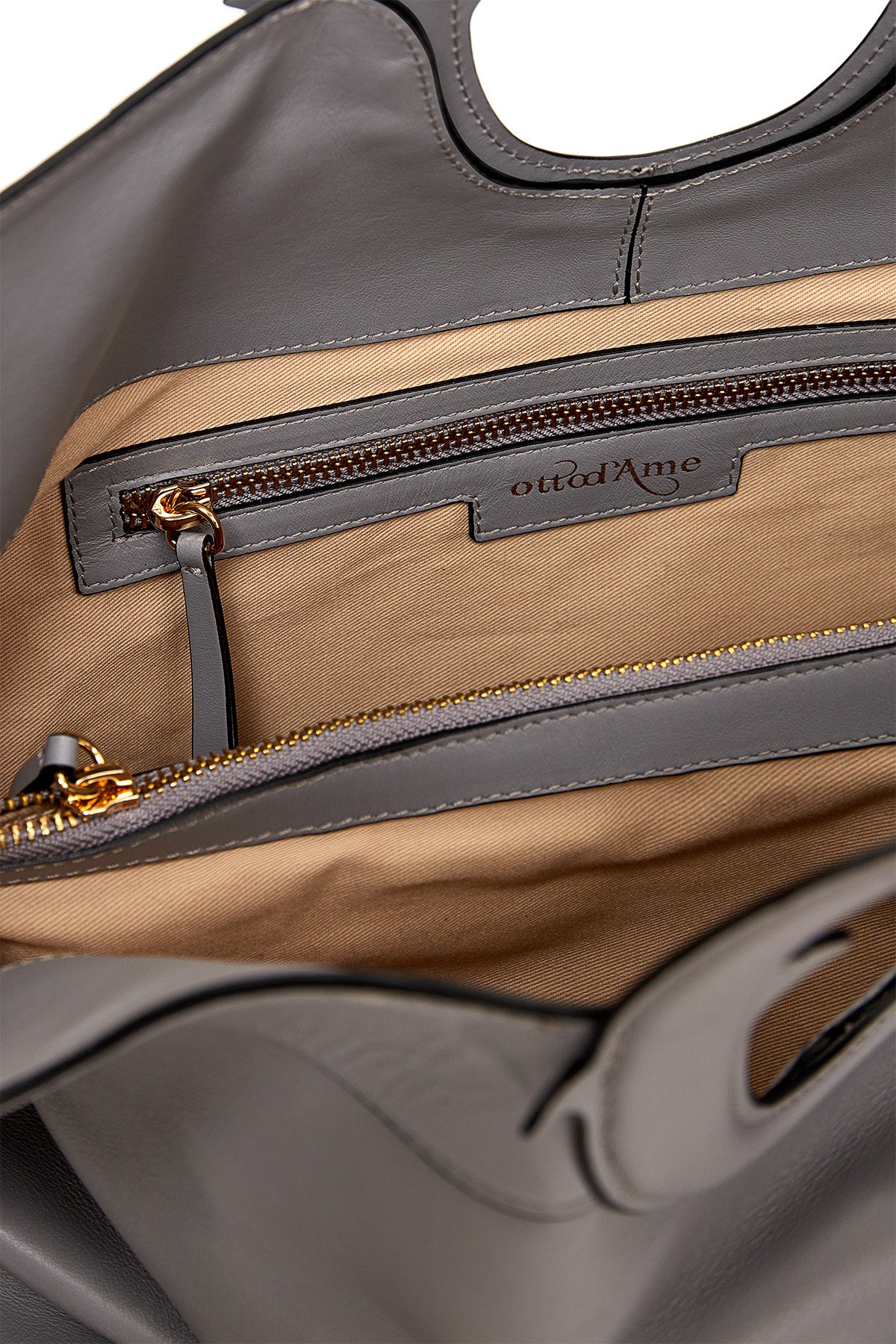 Large tote model bag with leather logo handle and adjustable shoulder strap. Interior with two slip pockets and zipped side pocket. Gold finish. Dimensions: 38×35.5×14 Shoulder strap length: 30 cm