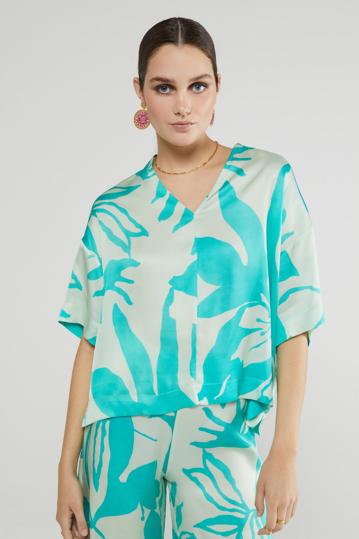 100% printed viscose V-neck sweater with 3/4 sleeves