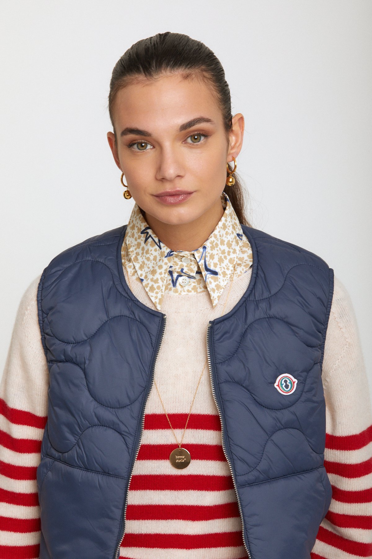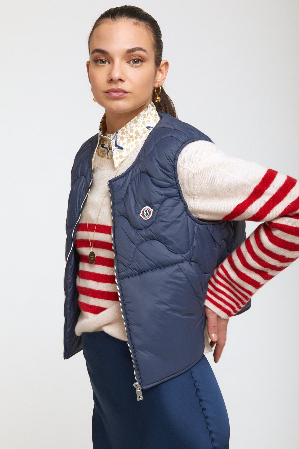 Puffer waistcoat with round neck and zipper.