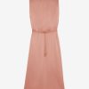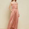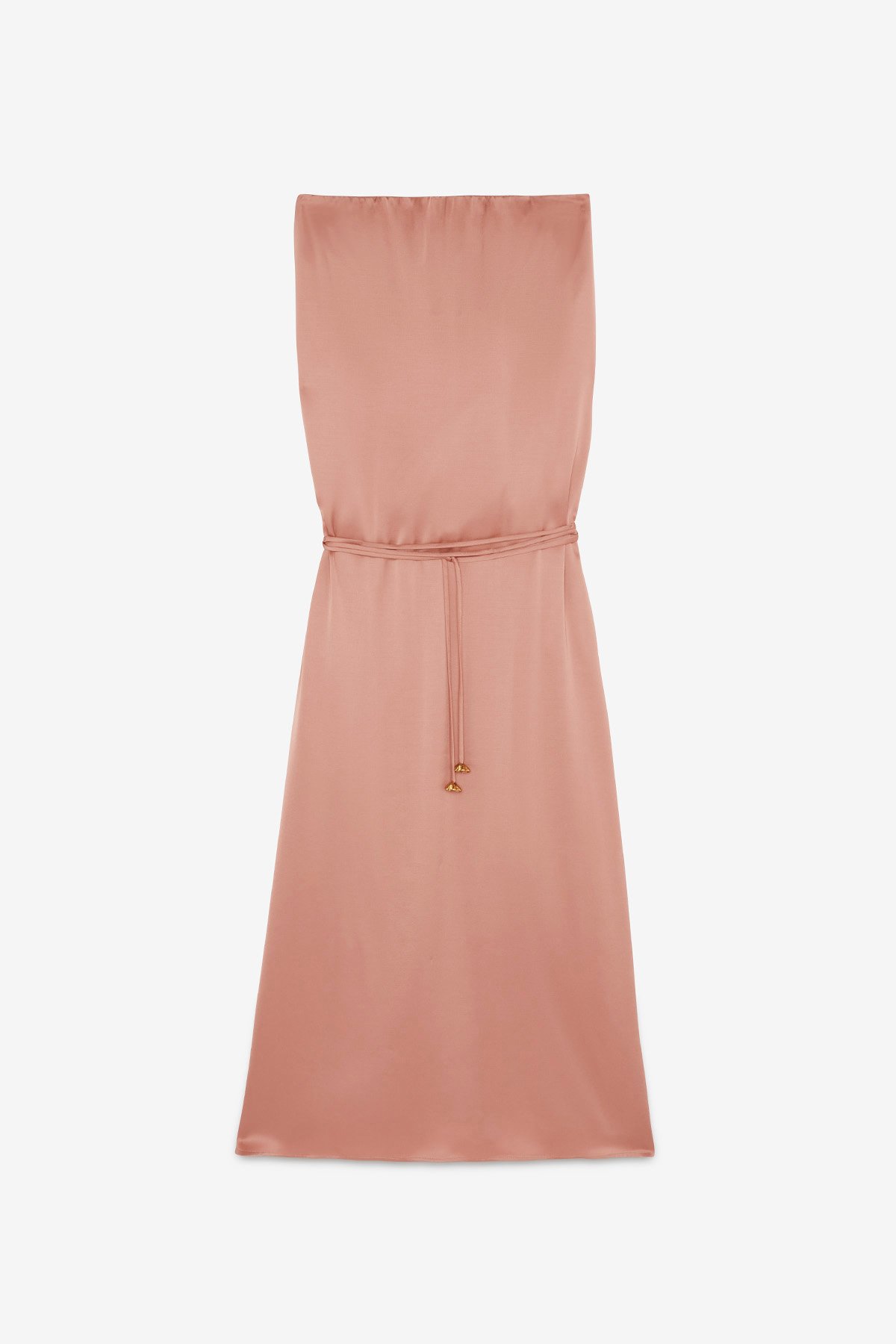 Fluid 100% viscose long dress with belt and bare shoulders